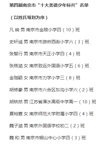 第四届南京市“十大美德少年标兵“评选活动圆满结束。我校初二(2)班魏子涵同学被授予第四届南京市“十大美德少年标兵”称号。