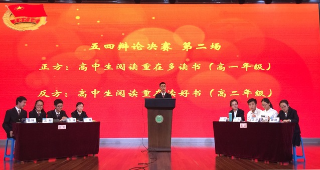 五四青年节之际,正值中国共产主义青年团建团95周年。在这个神圣的日子里,我校高中青年学生在报告厅举行了“激扬青春,砥砺奋进”主题教育活动。同学们畅谈青春,围绕青春重在多元尝试还是目标集聚、高中生阅读重在多读书还是读好书两个话题,进行了针锋相对的辩论和热烈讨论。伴随着讨论,同学们对高中阶段应该怎样树立怎样的目标、追求怎样的过程有了越来越清晰的看法。