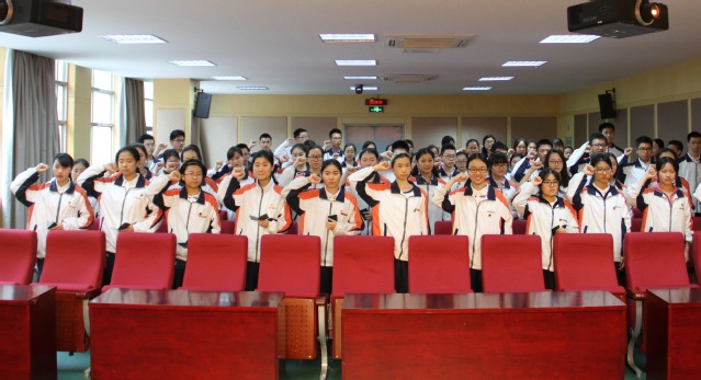 辩论赛结束,各团支部组织同学开展了“模拟人大,学写提案”主题团活动,希望同学们能积极参与社会实践,反思自己、学校以及社会中的现象,在调研的基础上提出自己的建议,切实发挥先进青年的模范作用。同时,本学期高中新团员入团仪式在我校小剧场隆重举行。已被保送至外交学院的高三学长王天钰同学主持了新团员入团仪式。入团仪式在新团员们面向国旗高亢的国歌声拉开序幕。高中的老团员为他们颁发了团员证、团徽。新团员佩戴团徽后,面向团旗,在团委书记尹荷蓉老师的带领下庄严宣誓,并逐个报上自己的名字,宣誓仪式给同学们增添了一份使命感、责任感。之后,校团委组织委员杨可昕宣读了团员的权利和义务,新团员代表高一(8)班的杨贯廷同学做了表态发言,江苏省优秀团员、已被保送清华大学的刘麓成学长作为老团员代表发言,他结合自己加入团组织后的成长经历,给同学们提出了真挚的期望。最后,团委书记尹荷蓉老师希望新团员们在新的起点下,能不忘初心跟党走,砥砺奋进展风采;要记住总书记的嘱托,立志做大事而不是立志做大官;希望每个新团员也积极参与实践,参加模拟人大学写提案活动,用实际行动争当青年楷模。