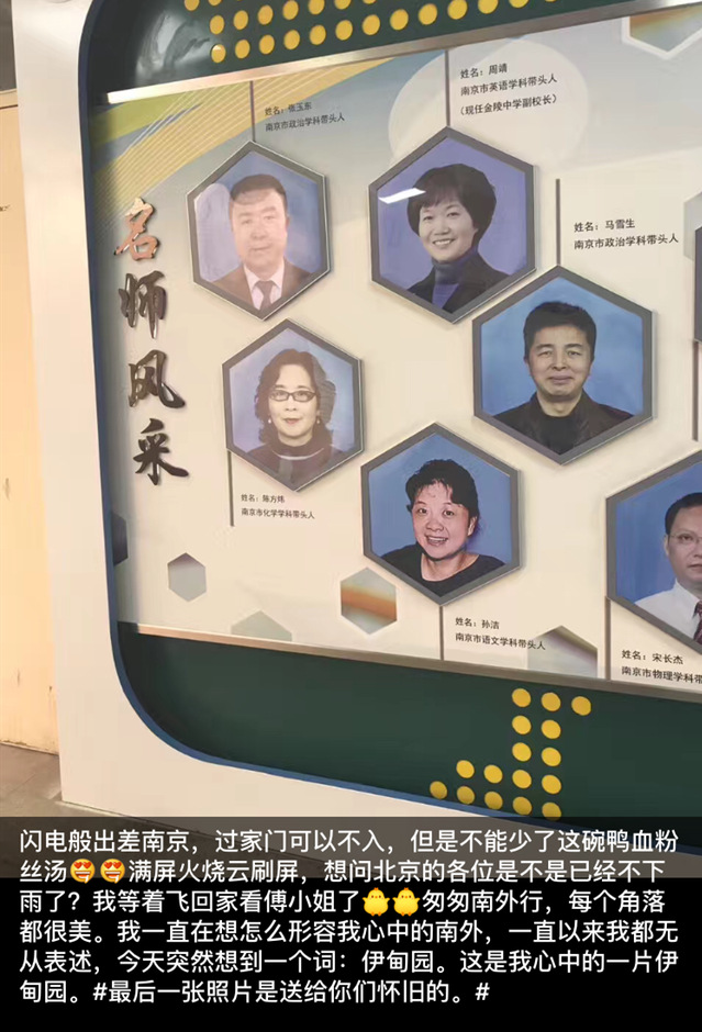离开南外后,李颖校友在她的朋友圈发了如下图文: