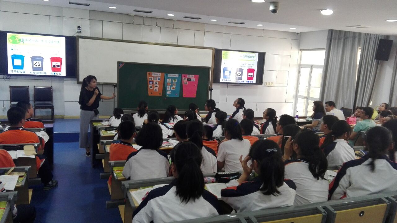 5月26日下午南师大新疆双语初中生物骨干教师培训班的23位老师在他们导师的陪同下来我校生物组听课学习,马媛媛老师为他们开设了一堂初一的观摩课《保护生物圈——从自身做起》,课后马老师就这堂观摩课做了课堂设计的分析,会后生物组陈芸老师陪同他们参观了生物实验室,具体介绍了高初中数码显微镜的使用和教学应用中的便利。随后参观了解剖室、组培室和生物标本长廊,以及学生制作的DNA模型。陈芸老师还特邀学校STEM+课程基地负责的许亮亮老师介绍了该课程基地相关背景和实验室设备及学校的资金和师资的投入,以及课程的设置意义,获得了新疆同行的钦佩和羡慕。