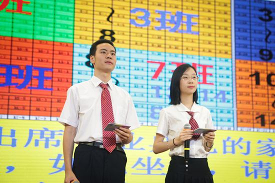 伴随着个性鲜明的班级介绍,在学校领导、全体高三教师和家长的注目和掌声中,身着正装、神采飞扬的全体毕业生依次入场。毕业视频《最好的我们》分“秋、冬、春、夏”四个片段呈现出三年中每一个令人难忘的瞬间,激起一阵阵的掌声和欢笑。