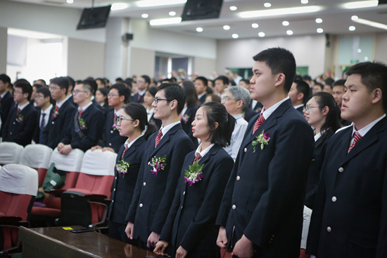 在悠扬的校歌声中,邹正校长一一为毕业生颁发毕业证书并亲切合影,同学们纷纷走向前排,和老师们握手、拥抱,整个会场的气氛达到最高潮。