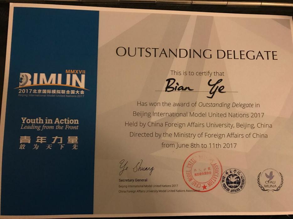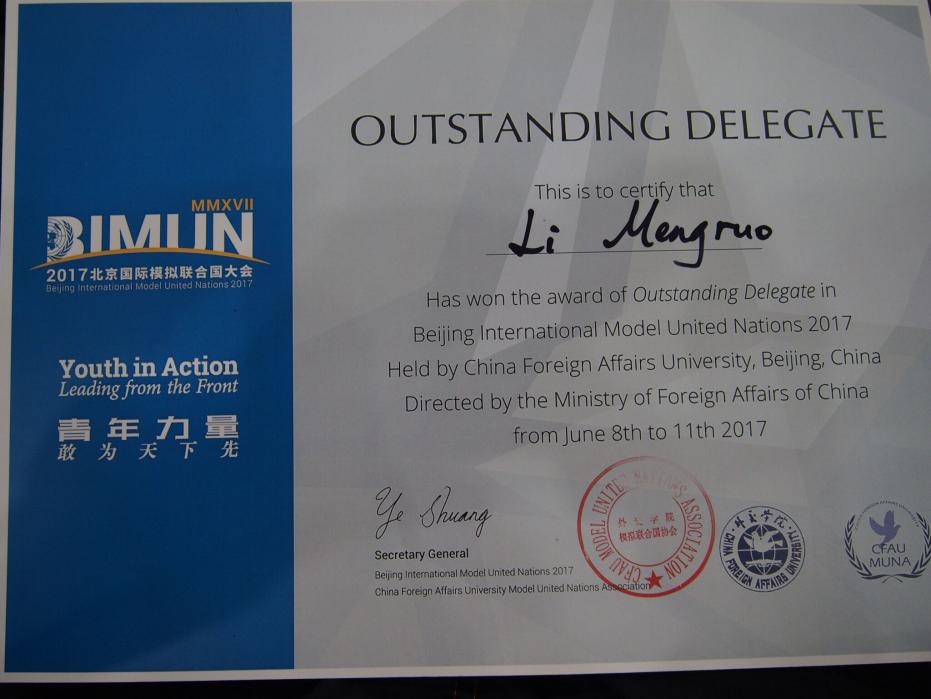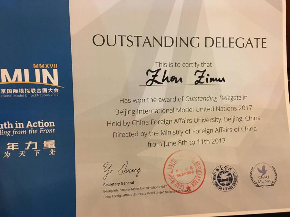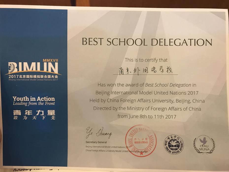 祝贺南外学子在2017北京国际模拟联合国大会取得骄人成绩