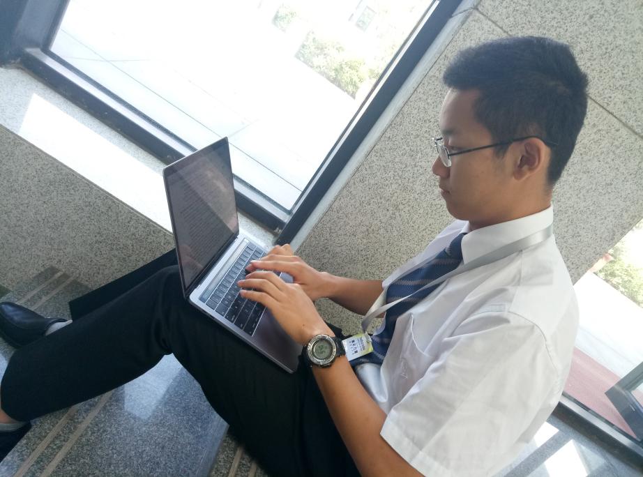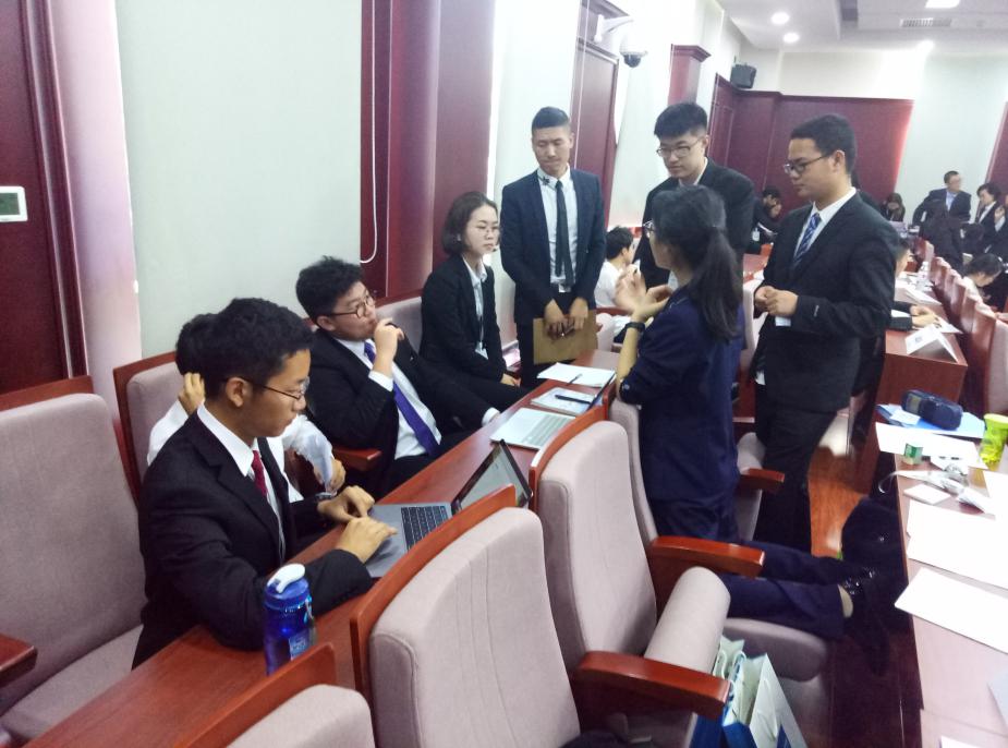 高二(8)班李泰林同学(站立)与大会代表磋商