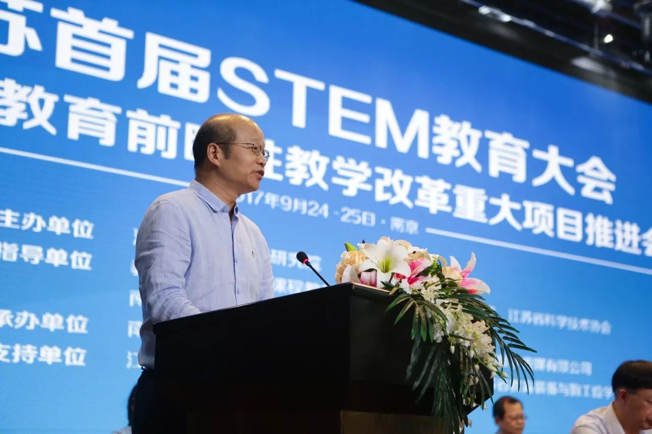 教育部基础教育课程教材发展中心教学处莫景祺处长出席活动开幕式并发表讲话。他指出STEM教育具有重要的战略意义,在促进社会经济转型、教育的多学科融合、人才培养模式和评价方式的变革方面都具有重要作用。他希望江苏通过本土化研究,建立STEM教育的理论体系和话语体系,开发出具有江苏特色的基础教育阶段STEM课程,形成成熟的STEM教育模式,供全国其他省市借鉴、复制或应用。