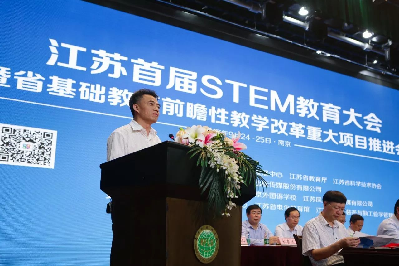 省教育厅朱卫国副厅长在随后的讲话中,充分肯定了南外的STEM+教育做法。朱厅长指出STEM教育是全球教育发展的共同潮流,对培养学生创新实践能力、提升全民科学素养、增强国家竞争力具有重要意义。朱厅长强调STEM教育强调学科融合,打破学科之间壁垒,开展基于真实问题的项目式学习,鼓励创新。江苏的STEM教育刚刚起步,需要做好顶层设计、开展实践探索。朱厅长建议STEM教育要以学科教学为基础做好拓展延伸,从学科中充分挖掘资源,做好跨学科主题的开发与实施,探索校内与校外合作的育人模式,鼓励全省各地域、各学校形成具有自己特点的STEM教育经验和模式。