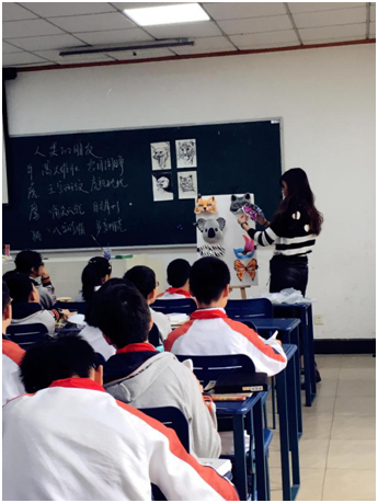 第二节课,姜嘉纬老师则是通过听声音辩动物的方式引领学生了解动物绘画的不同表现方式,探讨描绘动物的方法,她还让学生自己动手完成“保护动物”招贴画,在感受艺术作品精彩之余,树立动物与人类友好共处的意识。