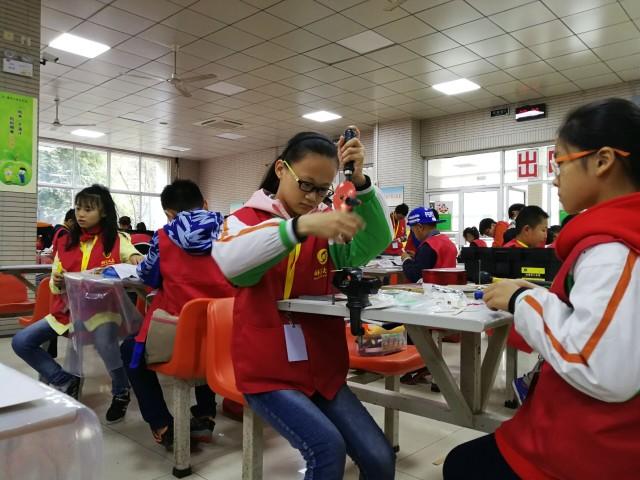 金钥匙仿生机器人创意大赛,是一项动手动脑相互促进的机器人竞赛项目,竞赛采用“当日团体制作、当日竞赛”的方式进行。紫金山记者在现场看到,参赛小选手们使用锯子、钳子、螺丝刀、手摇钻等工具和统一提供的材料包,发挥自己的想象,制作出模仿不同生物运动方式的仿生机器人。“我们要造一个超级老鼠,它跳的会很快。”小学组的的一位小选手,一边忙碌一边向记者介绍。