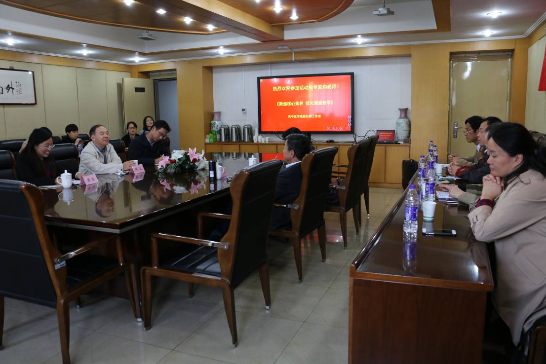 2017年10月25日下午,南京市高中化学陈懿名师工作室《聚焦核心素养优化课堂教学》主题研讨活动在我校行政四楼会议室成功举行。