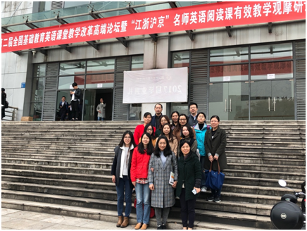 2017年11月9日-11日,第二届全国基础教育英语课堂教学改革高端论坛暨“江浙沪京”名师英语阅读课有效教学观摩研讨会在浙江金华召开,会议旨在进一步深化核心素养视野下的英语课堂教学改革,深入探讨英语阅读课有效教学方法与策略。论坛共分为国内英语教育专家主旨发言、“江浙沪京”名师课堂展示和四地特级教师专题论坛3部分,来自江苏、浙江、上海和北京等14个省市的1000余名初高中英语教研员、一线英语教师参加论坛。我校由余卫星老师带队,共计17名教师参加教学观摩和研讨,其中王雯、费晨两位老师分别应邀参加了初中组和高中组名师课堂展示。