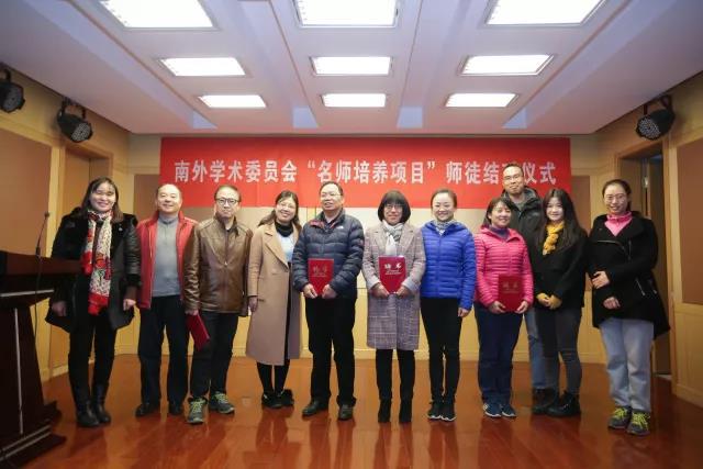 11月22日下午,我校“名师培养项目”师徒结对仪式在小剧场举行。“名师培养项目”由南外学术委员会组织,旨在充分发挥学术委员会成员的传帮带作用,加快我校青年骨干教师的专业成长,培养有发展潜力的骨干教师成为名师,如学科带头人、特级教师、正高级教师等。名师培养项目中,每位学术委员会成员带一至三名徒弟,师傅和徒弟双向选择,自愿结成对子。邹正、刘前树、周弋、连凯、朱征等校领导,19位师傅和40位徒弟参加了结对仪式。仪式由南外学术委员会秘书长陈懿主持。