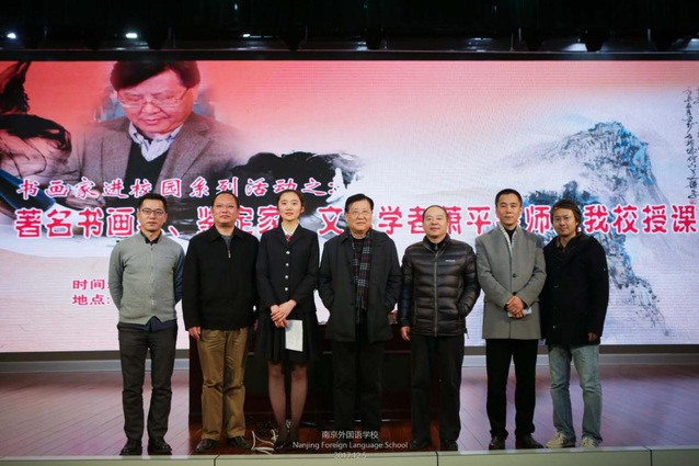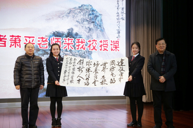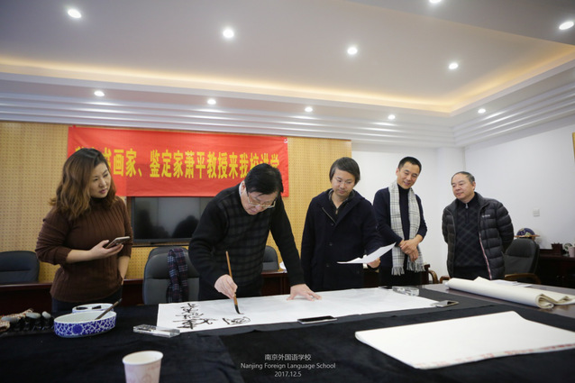 (萧平老师为我校挥毫泼墨)