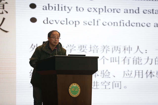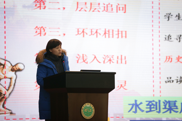 李俊老师汇报的主题为《高中英语批判性思维能力培养途径的实践与思考》。