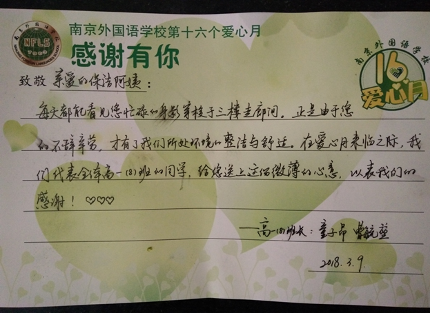 或许,是因为爱心月大家为各科老师以及保洁阿姨准备的写满祝福的感恩小卡片,让身边的所有人感受到8班的暖;