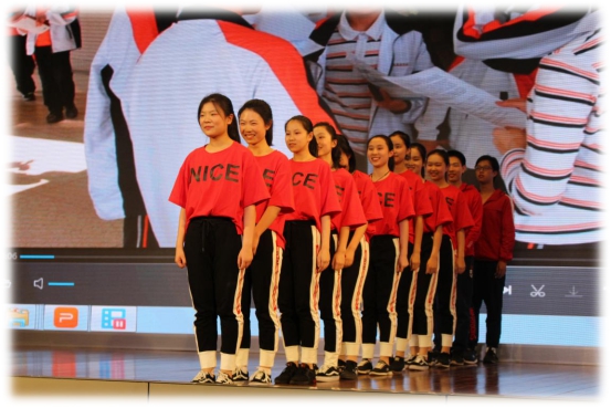 接下来进行支部活动。高二年级同学回到各支部落实“青春乘风破浪,榜样在我心中”主题宣传月活动,高一年级同学留在报告厅举行“厉害了我的青春”啦啦操比赛。同学们在舞台上尽情挥洒青春的汗水和热情。