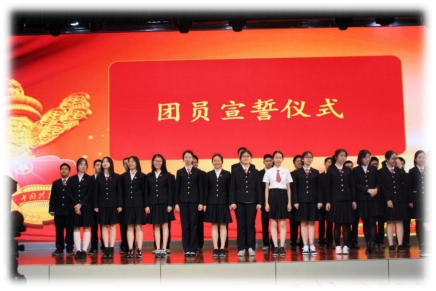 聆听邹校长的谆谆教诲之后,我们迎来了宣誓仪式。新入团团员在校团委尹荷蓉书记的带领下面对团旗宣誓,全体团员起立重温入团誓词。一句句发自肺腑的“我宣誓……”从礼堂中各个座位传来,映衬着每位团员佩戴的闪闪发亮的团徽,点燃了青年们的澎湃激情。