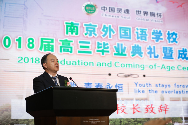 今天,是我们在座所有人都期盼已久的一个重要日子,我们在这里隆重举行南京外国语学校2018届高三毕业典礼暨十八岁成人仪式。首先,请允许我代表学校向执教过2018届学子的所有教师致以最崇高的敬意!向2018届全体毕业生致以最热烈的祝贺! 向多年来关心、支持、信任南外的各位家长表示最诚挚的感谢!我们永远都是密不可分的南外人!