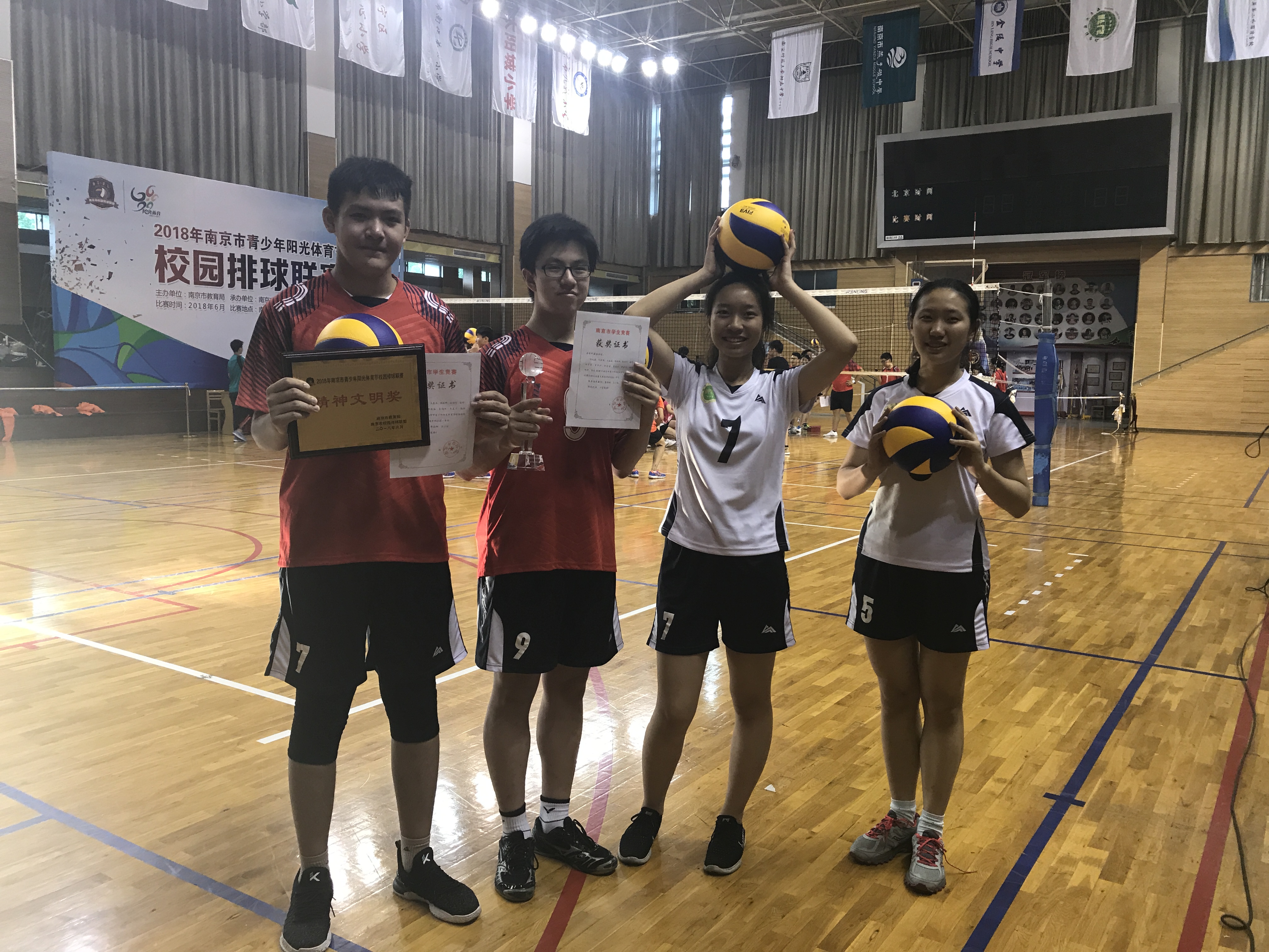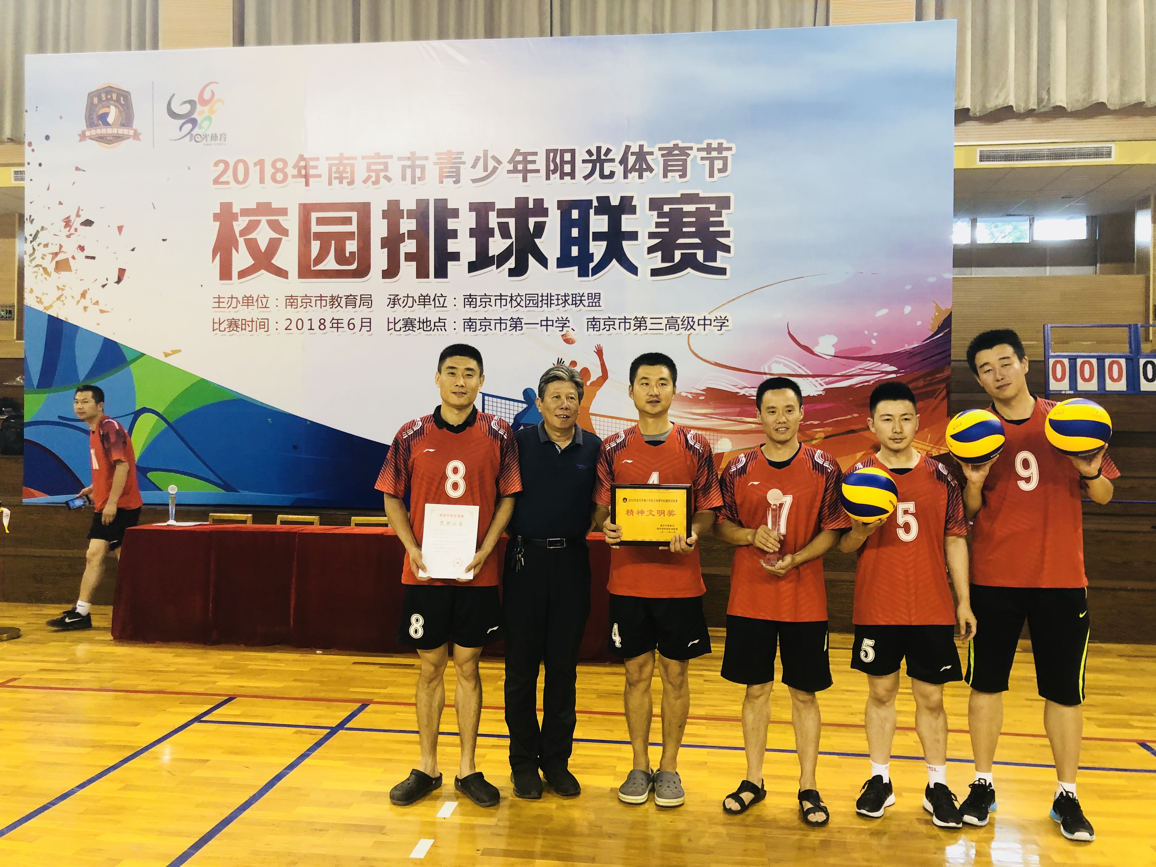 2018年南京市青少年阳光体育节校园排球联赛高中职校男子、女子组的比赛于2018年6月16日在南京一中和南京三中落下帷幕,我校高中男、女排在比赛中奋勇拼搏,遵守比赛规则,尊重裁判与对手,赛出了风格,打出了水平,最终都荣获一等奖,同时荣获“精神文明奖”。