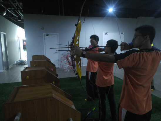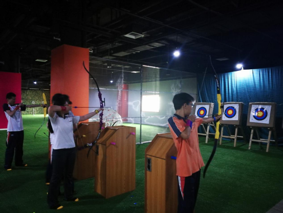 对抗赛结束后进入自由活动时间。大家跑去自己喜欢的项目进行体验,例如射箭,飞镖,还有紧张且刺激的高空攀岩。