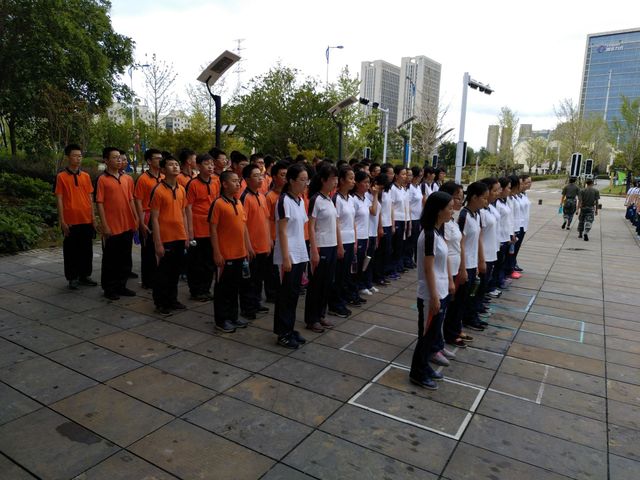 军训的第二天在蒙蒙细雨中展开,昨天的疲惫并没有打垮同学们军训的热情,年级组长许亮亮老师上台给大家加油打气,鼓励同学们克服困难、磨练意志,台下掌声热烈。今天进行了分组训练,除了常规的队列训练外,有些同学被分到了拳术方阵、女生队列操方阵等进行专项训练。伴随着大家在各自方阵刻苦操练,雨势也渐渐大了起来,仿佛在给同学们加油助威。经历了昨日的酷暑和今日的淋雨,不少同学感到身体不适,但都咬牙坚持训练,基地也贴心地给同学们准备了姜汤,驱散了一些湿气。午休后,同学们在报告厅聆听了国防教育讲座,精彩的讲座不仅让同学们了解了国际形势,也激发了大家的爱国之心以及拼搏的斗志。在接下来的拉歌活动中,大家积极踊跃,军体拳方阵声音洪亮,打靶归来的歌声响彻全场!虽然训练艰苦,但也充满了收获和乐趣,这就是今天军训的新发现!