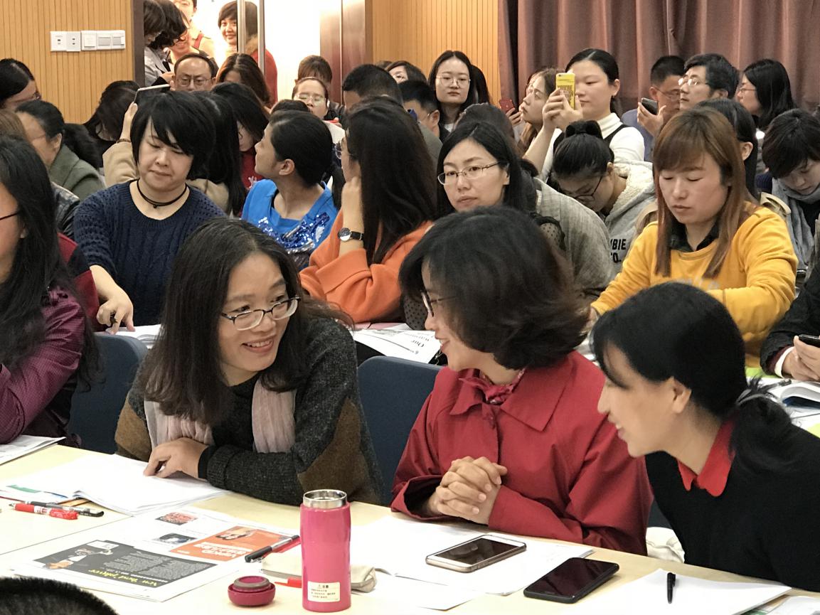 课后两位执教老师对课程进行了简单的说课。李爱云老师从认知和思维角度对两节课作了精彩的点评。在点评中她指出:1、教学预设时老师要时刻提醒自己注意“核心素养”在课堂的落地生根。2、课堂追问不仅激发学生思维,也是一种实现高质量赏识教育的方式;老师的智慧往往体现在那些unexpected moments中。3、老师要时刻注意倾听学生,只有师生、生生间开展有信息沟的实质性的交流,思维碰撞才能有动态的生成(let learning happen), 让学生进教室时和出教室时是不一样的。