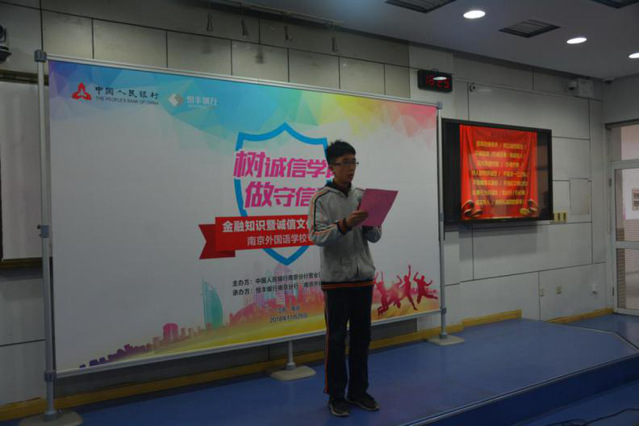主持人先简单介绍了中国人民银行和恒丰银行,然后直入主题。她提示我们要认真听讲,为后面的有奖问答环节做准备。听到这里,同学们更加期待,每双眼睛都盯着讲课的老师,内心的激动溢于言表。