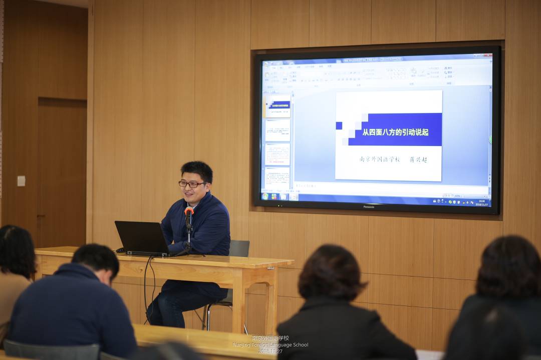 三位新教师发言结束之后,由三位教科研优秀骨干教师蒋兴超、朱琳、许亮亮分别代表文科片、外语片和理科片与新入职教师们分享教科研的经验和体会。