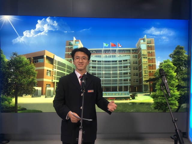 相信大家已经猜到了,他们就是我校国旗班的同学们。下面就有请国旗班的一员,高一(7)班潘锦豪同学来为我们介绍国旗法和国歌法的相关知识,大家欢迎。