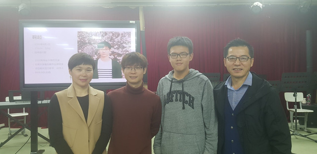 在讲座过程中,鞠起学长还为我们演奏了几首摇滚歌曲,并与自己的老师见了面,场内充满了欢乐与温暖,掌声连绵不断,鞠起学长还希望我们在自己的路上坚定不移地走下去,相信我们“总有一天能够在自己的领域中有所成。”