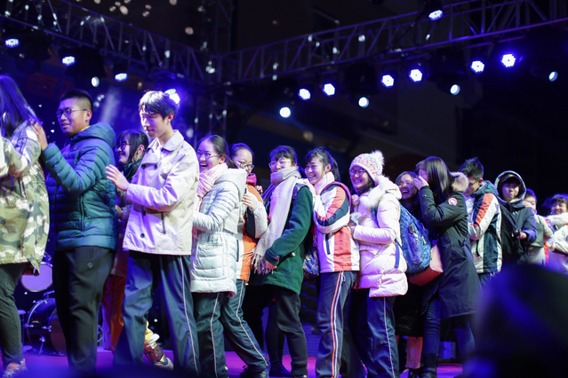 一年一度的迎新晚会如期而至啦!今年为了环保,我们放弃了往年传统的篝火计划,虽然同学们个个都快冻成了冰棍儿,但迎新的热情依旧空前高涨!而改用造雪机迎新年的创意,让南外的校园更显诗情画意!