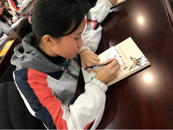 活动的后半程,由恒丰银行南京分行向我校学生展示他们做的公益活动,并介绍二圣中心小学的情况,通过介绍,大家对公益活动的目的和意义有了更深入的认识。之后,同学们每人领取一本爱心图书,在定制的卡片上写下了寄语,有的同学引用诗句名言——“腹有诗书气自华”“读万卷书,行万里路”,有的同学写下自己的读书感悟——“书是良师朋友,是看向广大世界的窗口”,每一位同学都认真端正地书写着,用自己的笔迹和语言传达了对二圣中心小学孩子们的勉励和祝福,卡片和图书一起将通过公益桥交到孩子们手中。