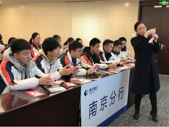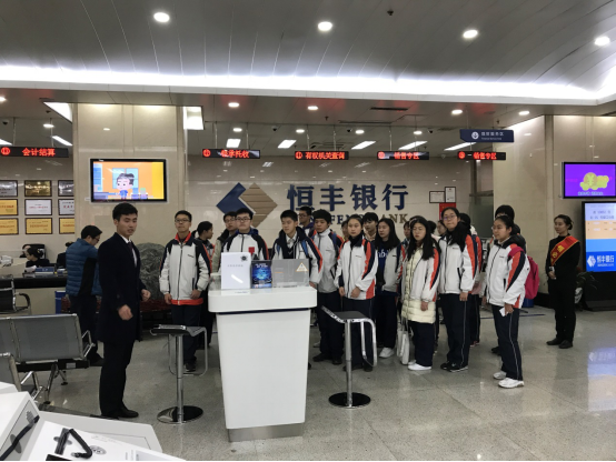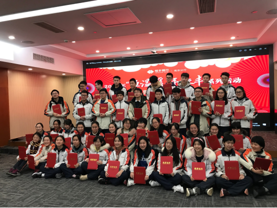 2019年11月24日上午,在校团委王少林书记与政治教研组长陈铮老师带领下,南京市外国语学校高一(3)班同学来到恒丰银行南京分行,参加了主题为“志在千里,智领未来”的公益桥活动。