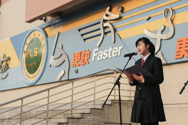 陆:老师们,同学们,大家早上好!我是来自高三(7)班的陆静文。