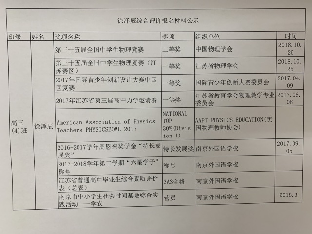 3.经本人申请,现将综合评价获奖情况申报材料公示如下: