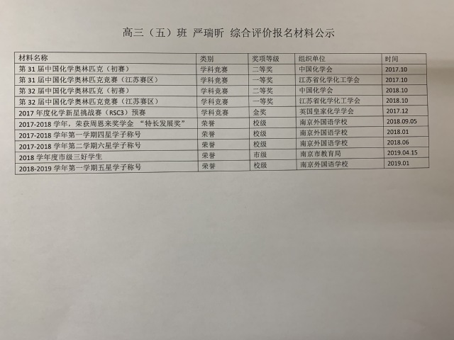 3.经本人申请,现将综合评价获奖情况申报材料公示如下: