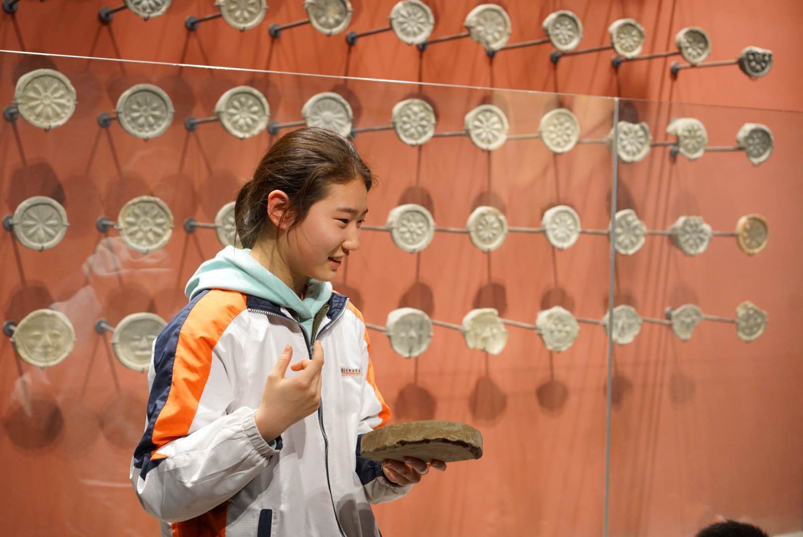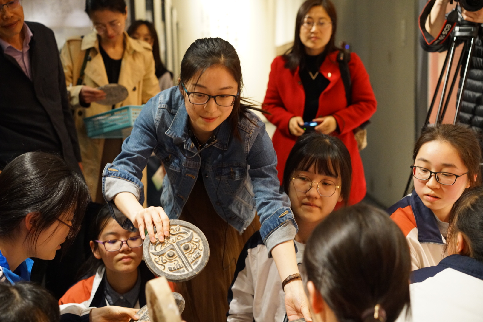 最后,工作站老师来到六朝博物馆,观摩我校极具特色的选修课程“小石榴课堂”,本课以“认识瓦当艺术”为主题,由历史教师和美术教师跨学科合作,颠覆了传统的课堂教学形态,带来了丰富生动的历史文化体验。