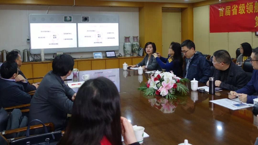 工作站主持人唐琴老师向刘前树书记、余维主任表示感谢,同时向刘书记、省历史教研员刘克明主任以及南外的历史教研组介绍了省首届领航名师遴选、组建、运行以及取得的成果。