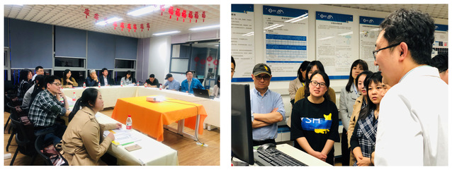 4月18日晚,STEM团队教师一行一到上海,就赶到华东师大科技园参观了上海纽迈创新公司,了解磁共振设备在中学实验中的应用。公司朱总经理介绍了磁共振的发展,以及磁共振在物理、化学、生物、地理各学科中的开发应用实例。纽迈创新的冯冲博士给老师们介绍磁共振设备,并演示了磁共振的成像实验。老师们也亲自动手操作,热烈地交流讨论,如果将这一技术手段应用到STEM项目研究中,很多关于生活中疑问,譬如苹果为什么靠近果核的地方更甜,为什么有的牛肉越煮越老等,以前停留在问题阶段,现在就可以通过磁共振给出具体的数据加以解释,让学生可以从科学角度解释生活中的现象。