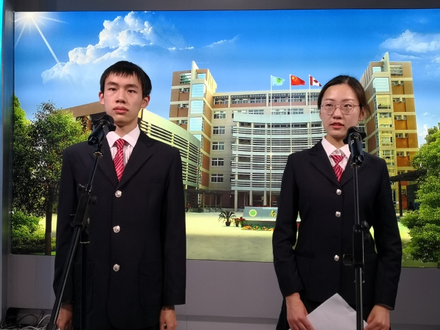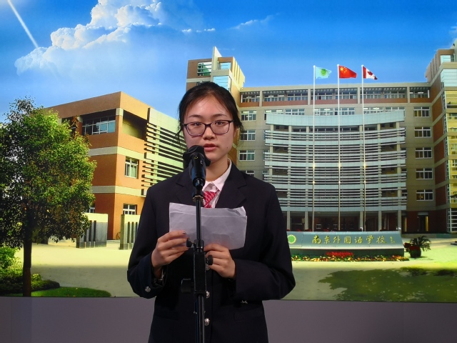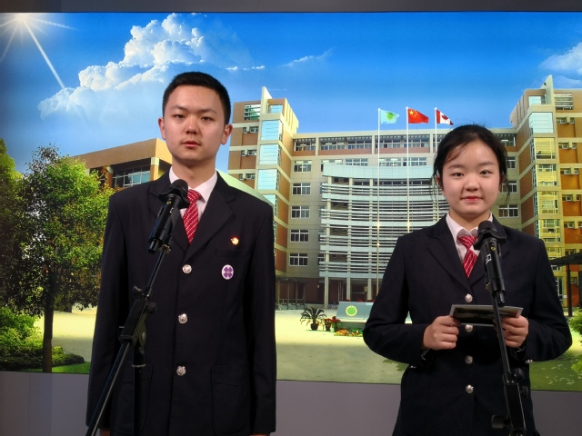 周:下面有请高三(3)班的王宇涵同学和高三(7)班的袁与晴同学来谈一谈他们对五四精神的思考。