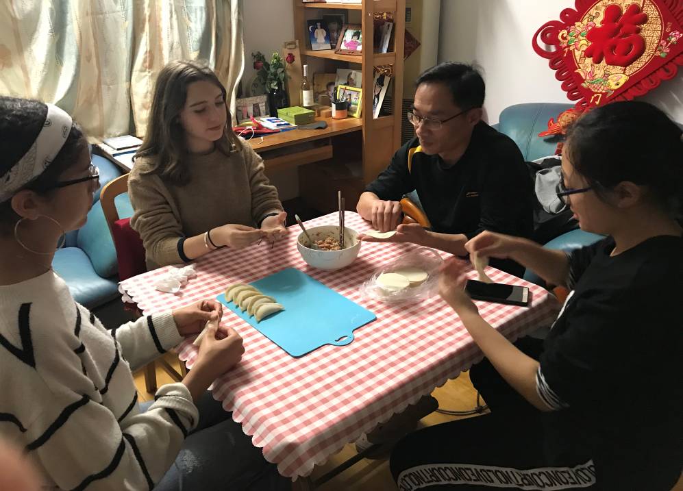 4月5日至7日恰逢周末和清明节,我校接待家庭带着法国学生畅游在南京的大街小巷。参观南京博物院、游中山陵、漫步音乐台、爬台城、夜赏秦淮河、观夫子庙灯会;品尝小笼包、盐水鸭、春卷等南京特色小吃,或是红红火火热热闹闹地吃一顿火锅;更有接待家庭利用假期准备好了包饺子的所有材料,组织法国学生一起包饺子,让法国学生亲自体会制作中国传统美食的乐趣。