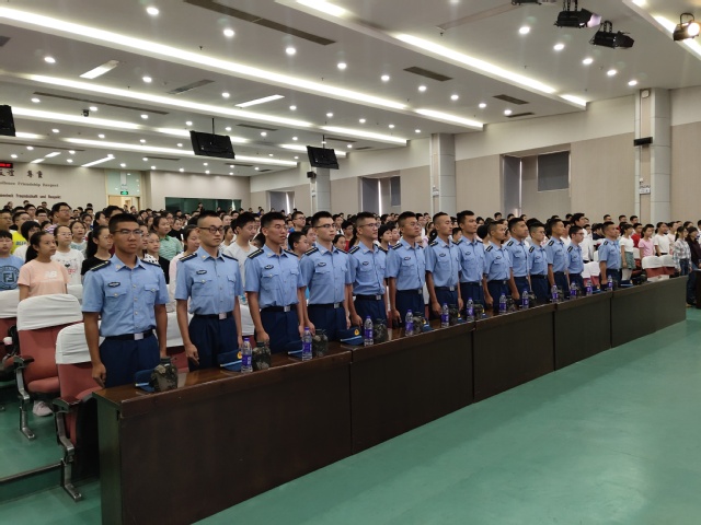 简短的开幕词后,同学们首先用欢迎来自南京航天航空大学的教官们。教官们为同学们做了精彩的军姿展示,飒爽英姿令同学们惊叹,会场不时响起热烈的掌声。之后敬奇教官现场指挥同学们练习了起立、坐下和端正坐姿,有了榜样的展示和具体的指导,同学们的精神面貌有了很大的提升。整个动员会期间,一直都保持这样精神抖擞的状态。
