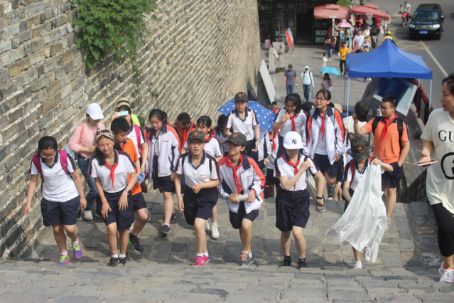 6月26日下午,南外古城墙文化俱乐部经过数月酝酿,组织415名南外2018级学生顶着烈日,再次踏上明城墙,参加“一步一分爱心”公益徒步活动,此次活动同学们将步数折合为捐款,用于向偏远贫困地区的小学建设“爱心书屋”、阅览室,捐赠文具、体育器材等,实现小学生们的“微心愿”,表达自己对农村留守儿童的关爱之情。