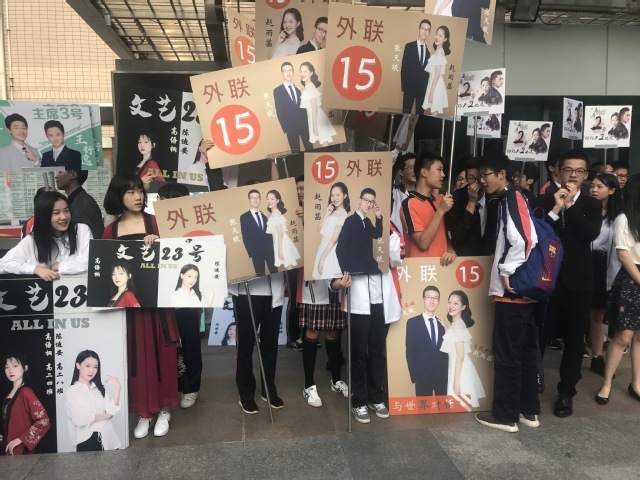 开学第三周,竞选周拉开帷幕!每天早晨6:50,候选人们已经纷纷站在了早已画好的位置上奋力呐喊,制作精美的宣传板、高高耸立的宣传旗、声势浩大的助选团、熙熙攘攘的旁观同学,都为候选人们做出了许多帮助,为宣传周添加了许多色彩。候选人们和助选团迎着清晨明媚的阳光,熙熙攘攘地挤在校门口,不顾汗水顺着鬓角一滴一滴流下,都使出浑身解数高喊着自己的口号,为自己争取更多的关注和机会。