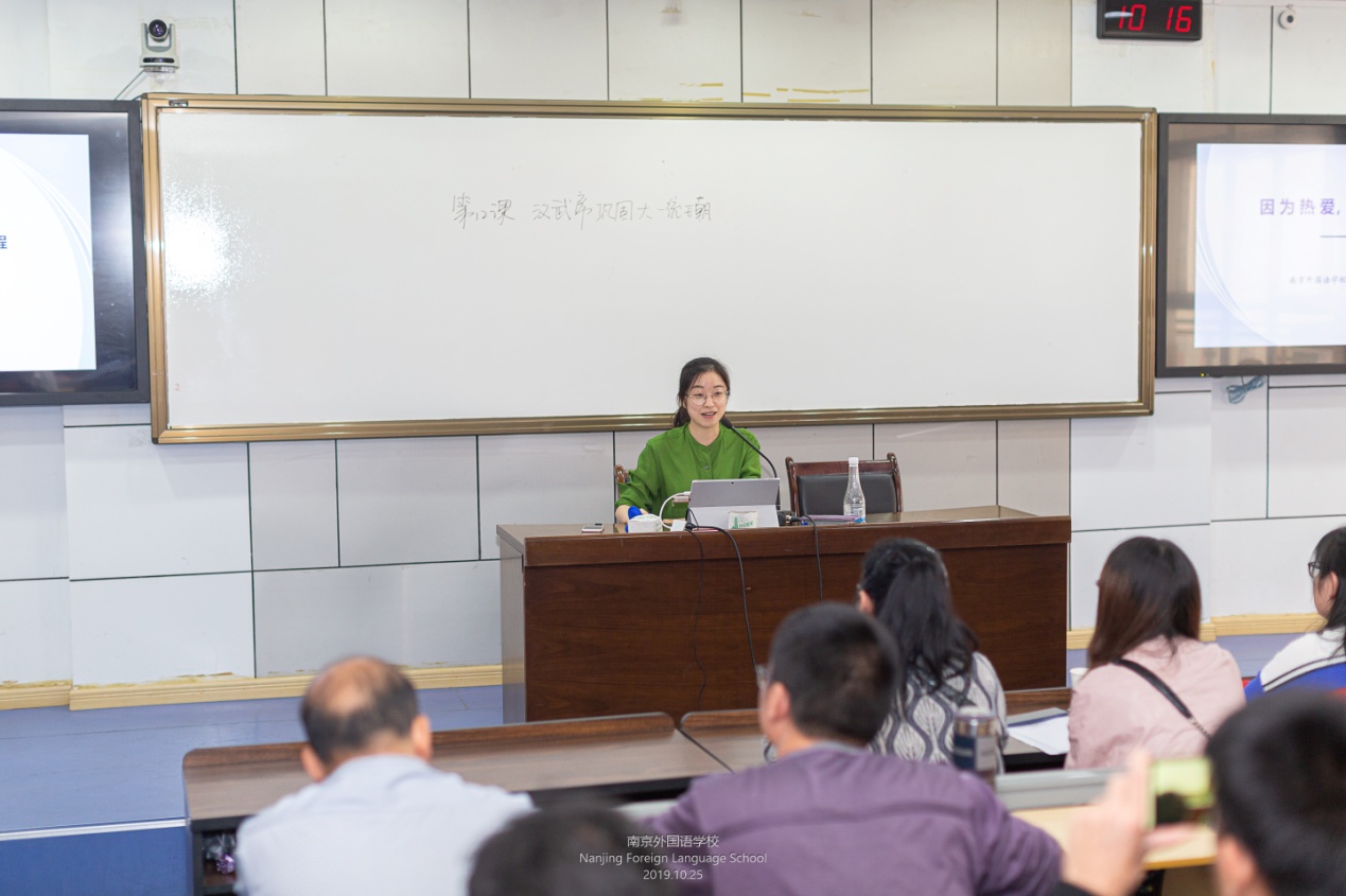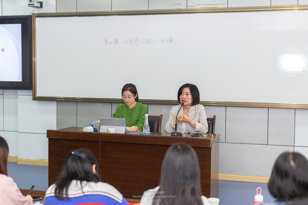 在课堂上,博学的徐康老师,用简练而明晰的历史图片与材料,在严谨逻辑中自然呈现了《中国共产党诞生》中“救亡图存”的呐喊:何以救国?惟我在此。中国共产党以它对时代的担当,以一往无前的勇气接过了历史的接力棒,开天辟地,任重而道远。整堂课,学生在老师特有的潇洒而具有个性的历史教学中,历史的情感不断喷发,满是若有所思的回响。又是在课堂上,夷萍带着“中国历史教学年会”精彩展示课的荣誉光环,全程再现了《汉武帝巩固大统一王朝》的身姿,她的轻声漫语,娓娓道来,她的细致入微,环环相扣,她的精当史料,丰富内涵,她用问题来启发,引领学生在自然、畅快中完成整课的学习,可谓“精心、精致、精到”。唐园园老师则以讲座的形式,以一位新入职老师的感悟之言,倾情畅谈博物馆课程《透物看史》的一路心力和收获:从开始的不知如何下手,到认知路上坎坷冲撞,一如初心,持续向前,在学习中感动,在感动中学习。
