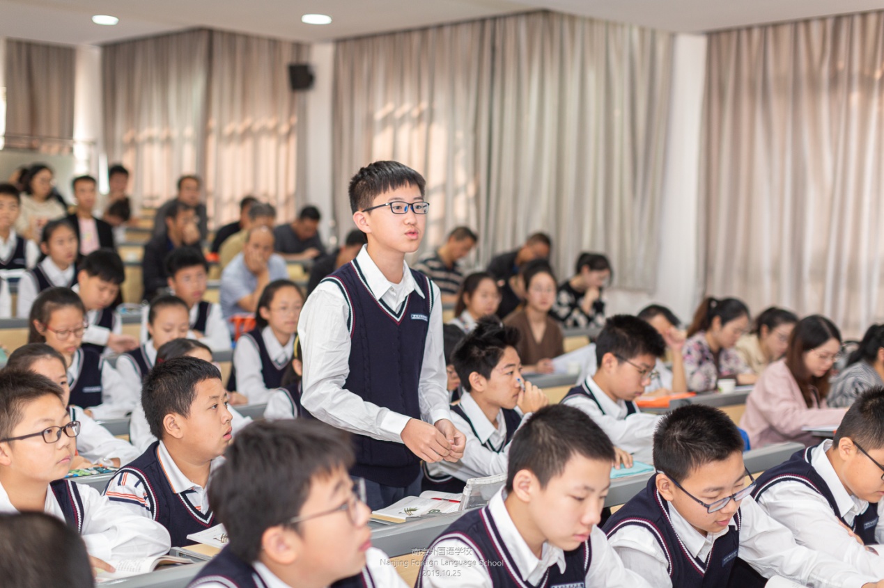 恰逢霜降时节,2019年10月25日“国培计划”贵州省乡村初中历史骨干教师研修团莅临我校参观学习。整个活动由我校历史组承担设计组织,教研组长周媛媛老师主持活动,并向老师们介绍了学校的概况特色和教育教学理念,徐康老师、夷萍老师、唐园园老师的示范课和讲座为教师研修团队充分展示了南外历史课堂和博物馆选修课程教学的精彩和多元,巧妙诠释了“中国灵魂,世界胸怀”的精髓。