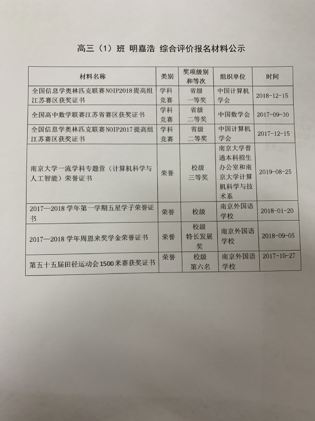 3.经本人申请,现将综合评价获奖情况申报材料公示如下: