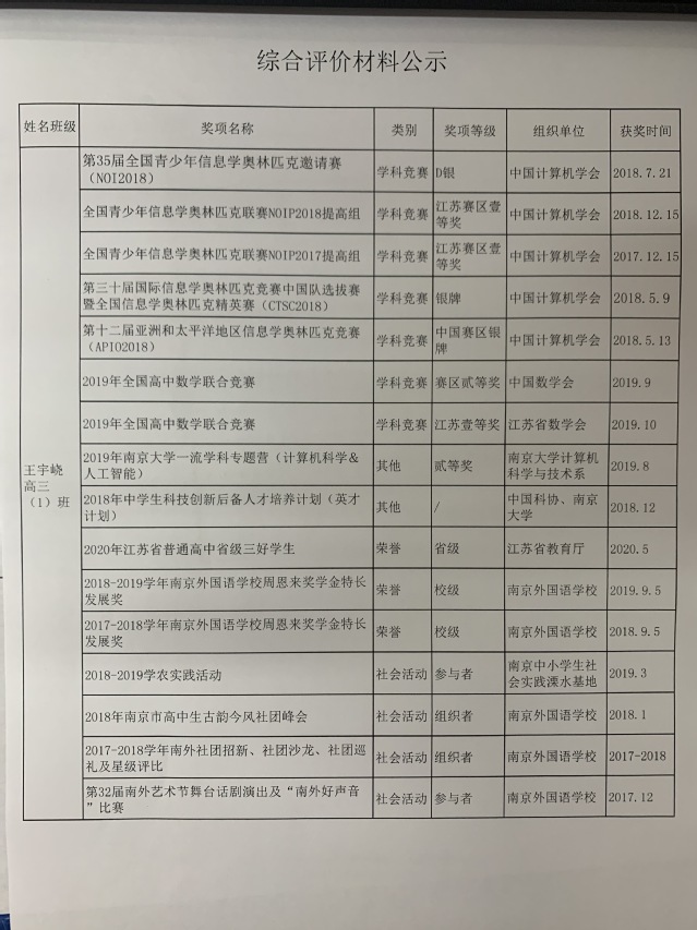3.经本人申请,现将综合评价获奖情况申报材料公示如下: