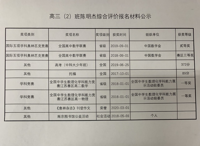 3.经本人申请,现将综合评价获奖情况申报材料公示如下: