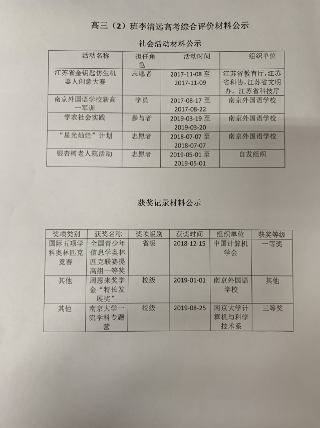 3.经本人申请,现将综合评价获奖情况申报材料公示如下: